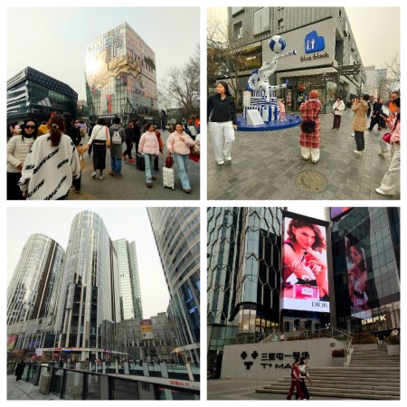 从停车场上来,迎面便是对面太古里那片错落的玻璃幕墙,在冬日的薄阳下,泛着冷冷的,却又亮得晃眼的光。过马路的游人早已织成了河,年轻的男女,举着手机,举着奶茶,穿着时尚的服装,脸上是饱满的笑容,像这节日的空气般很甜。过街的人群更是一道壮观的风景,绿灯一亮,黑压压地漫过来,淹没了斑马线,又漫向另一片光鲜的街区。我妈站在人潮的边缘,忽然有些怔住了。好似极力地想从这片光洁的,现代的,略显得喧嚣的玻璃与钢铁之间,寻出一点旧时的痕迹来。可那些痕迹,大约是太难找了。